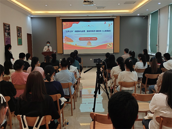 为加强校园文化建设,营造浓厚的校园文化氛围,全面推动“书香校园”经典阅读工程,贯彻学校图书馆的各项要求,4月20日晚图书馆和工商管理学院联合举办“郑商百家谈”第十讲读书分享会,活动采用线上线下相结合的形式开展,威尼斯官网党委书记宋森、团委书记董文浩,书香校园阅读经典工程负责小组的指导老师库玉娟、逯妍妍、遆瑞娇参加分享会。本期“郑商百家谈”由马克思主义学院党委书记牛晓锋教授为同学们解读《人间简史》相关内容。