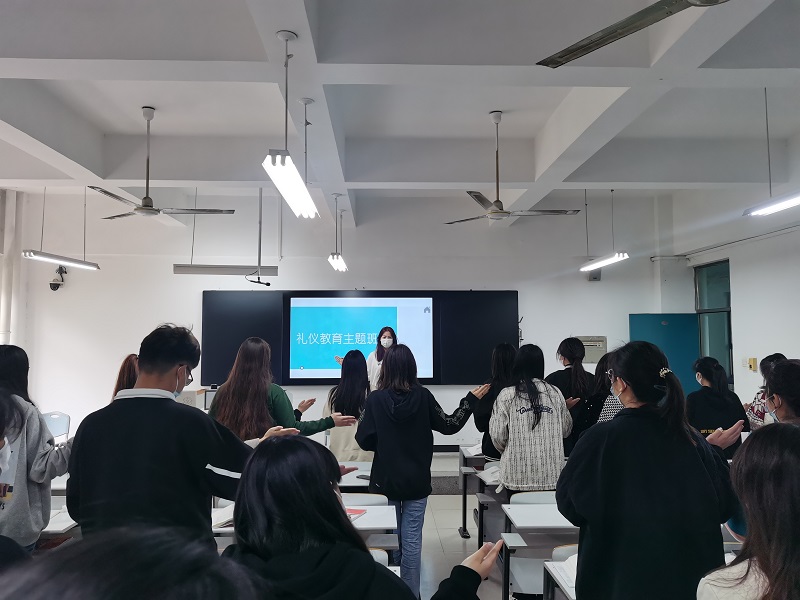 在学习礼仪课程和礼仪宣讲的同时,工商学院以班级为单位组织开展了礼仪教育主题班会,在学生中营造了将礼仪教育贯彻始终的良好学习宣传氛围,教育引导学生把文明礼仪潜移默化融入日常并影响身边人,做到“毋以善小而不为,勿以恶小而为之。”把功德装在心中,把法律记在脑海,把文明礼仪融入生活,从点滴做起,做有礼有节的文明人,做新时代崇礼、知礼、明礼、学礼的郑商学子。