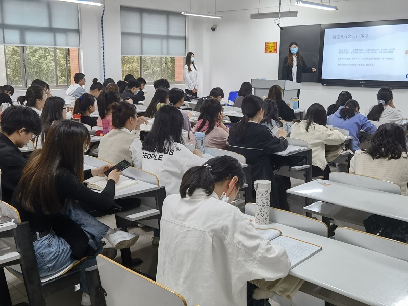 工商学院组织礼仪宣讲团进入各班级进行文明礼仪宣讲。礼仪是校园文化的重要表现形式,“一言一行见修养,一颦一笑见气质”,工商学院文明礼仪宣讲团旨在丰富大学生的礼仪知识,传播文明礼仪之风。从夏季文明着装礼仪、男女文明交往礼仪、宿舍文明礼仪、疫情防控文明礼仪等多个层面出发,倡导同学们践行文明礼仪规范,明白文明礼仪的重要性,争做具有高素质、高修养的大学生。在神态、肢体、语言、着装等方面指导并规范同学们的文明礼仪行为,进一步加强同学们的文明行为,增强同学们的文明意识,提高文明素养,培养自己成为讲文明懂礼仪的大学生。