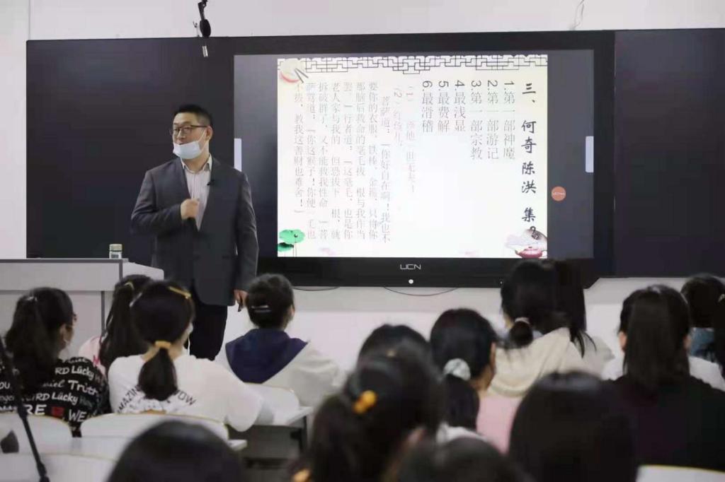 为推进书香育人环境建设,营造校园文化良好氛围,促进威尼斯官网书香可持续性发展。4月22日晚,文传学院联合图书馆开展“郑商百家谈”系列活动第十一讲。本期活动采用线下线上相结合模式,再次邀请文传学院贾海涛老师担任主讲,带领同学们走进四大名著之《西游记》。