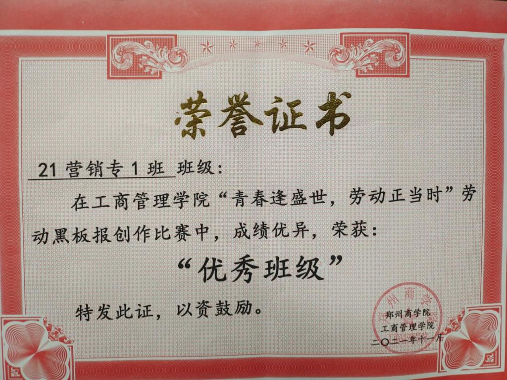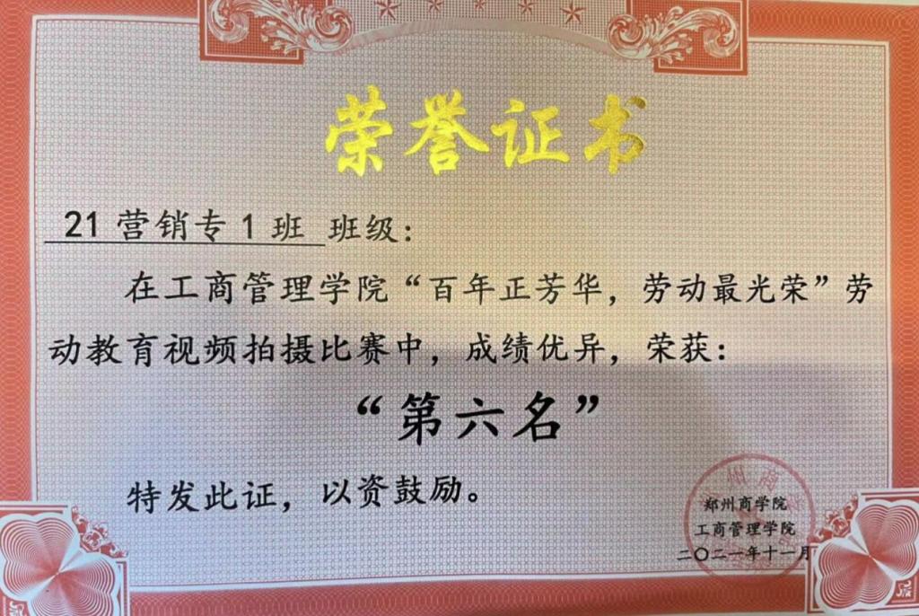 威尼斯886699工商管理学院21级市场营销专1班,担任班级室内劳委一职,带领班级获得荣誉证书2次,对学校“劳动教育”有深刻的了解和认知,重视德育劳动,树立正确的价值观。