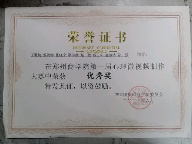 杨柯栩同学在班级和学院外也积极参与代表学校的相关活动。曾在2021年7月参加学校组织的“三下乡”暑期社会实践,代表学校及校新媒体运营中心深入巩义市委宣传部协助其工作,在实习工作中,他同其他成员以观察学习为主,努力完成领导的交办事宜和各项任务,学会一些宣传部里的工作流程和服务的程序,协助承担市委市政府的日常宣传工作。经过各科室领导及同事的悉心教导与指引,队员们逐步熟悉并参与了市委宣传部的官方公众号运营,宣传短视频制作,新闻稿撰写,相关活动的策划,资料信息的统计和整理等重要工作,以自己的实际行动展现了郑商学子任劳任怨、甘于付出的精神。其本人于2021年10月荣获学校颁发的“先进个人”荣誉证书。