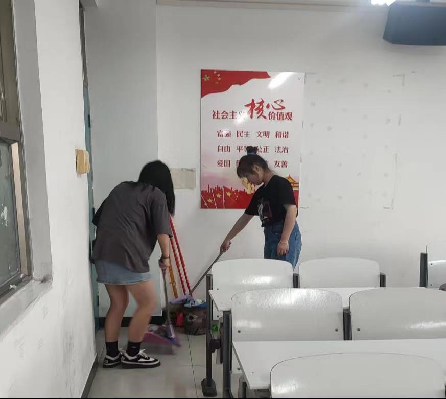 在一天中结束忙碌的课程中,虽然课程比较满,但是我们仍坚持去打扫室内的教室。同时我们互帮互助使我们深刻的认识团结就是力量,众人拾柴火焰高。