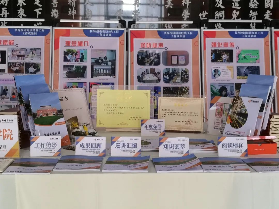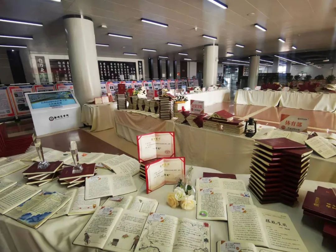 经过前期征集遴选和资料搜集,在各院部和有关部门的大力支持和配合之下,2021-2022学年“书香校园阅读经典工程”工作成果展暨“书香郑商”优秀读书笔记展于5月7日在图书馆一楼中厅举办。