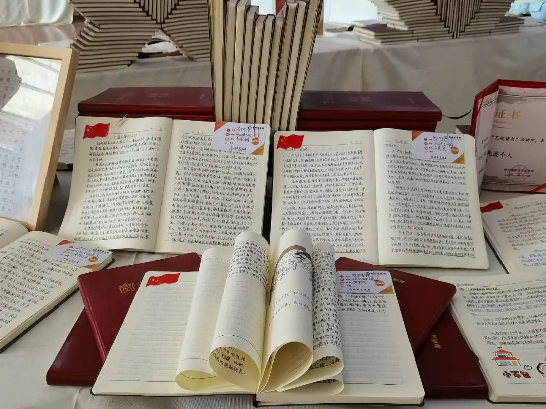 本次读书笔记展共征集各院部优秀读书笔记1000册。为提升学生的关注度和参与度,图书馆在展区设立“读书笔记展”纪念印章盖戳打卡服务台,并于5月10日启动“我最爱的读书笔记”线上投票评选活动。届时,图书馆将通过官方微信展示100余个入围校级优秀作品的读书笔记,为郑商学子搭建“共读·悦读”的阅读交流平台。
