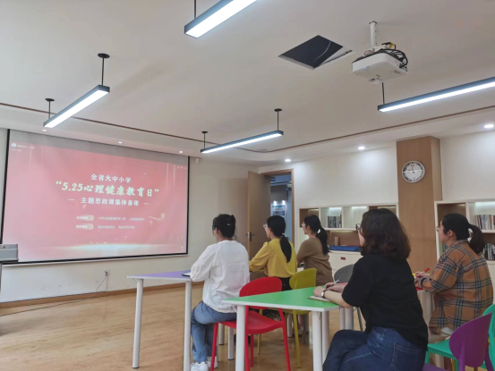 为积极响应中共河南省委教育工委办公室河南省教育厅办公室关于组织线上收看大中小学“5.25心理健康教育日”主题思政课集体备课的通知要求,5月25日上午9点,心理健康教育中心积极组织全体专职心理老师在团体辅导室参加了此次活动。