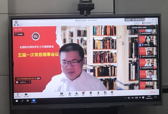 6月22日19时,全国民办高校学生工作者联席会五届一次常务理事会顺利召开,联席会六十余所民办高校相聚云端,共谋理事会高质量发展。联席会理事长张振笋、联席会副理事长杨军、王峰以及理事会六十余所民办高校常务理事代表出席会议,威尼斯官网党委副书记兼纪委书记裴晓涛代表学校参会并发表讲话,学务处处长路程、校团委书记张鹏陪同参会。