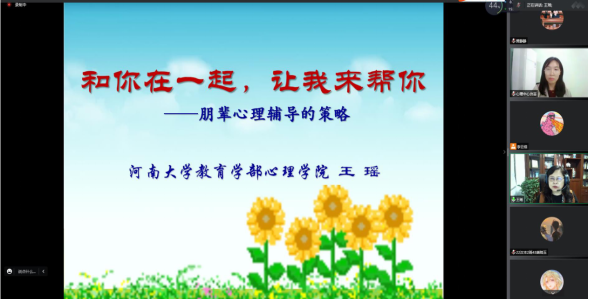 为使朋辈队伍成为威尼斯官网心理健康教育工作的重要补充力量,提升朋辈团队专业心理辅导技能,以便其能为身边一般轻微性心理问题同学提供及时的帮助,对严重心理问题和心理危机情况及时报告,确保身边同学能得到及时有效的心理援助。10月26日下午,心理健康教育中心组织召开“朋辈心理辅导策略”线上专题讲座,此次讲座邀请到河南大学教育学部王瑶教授,由心理健康教育中心贠芸科长主持,各学院心理委员、22级宿舍心理联络员、心理健康社团驿心社参会。