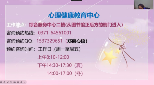 为提高威尼斯官网心理委员的专业能力与素养,以便更好地服务到班级每一位需要心理帮助的同学,11月17日下午,心理健康教育中心通过钉钉直播的形式组织开展本学期第三次心理委员工作培训“大学生常见心理困惑的识别与应对”。本次培训由心理健康教育中心的黄静静老师主讲,22级全体心理委员参加。