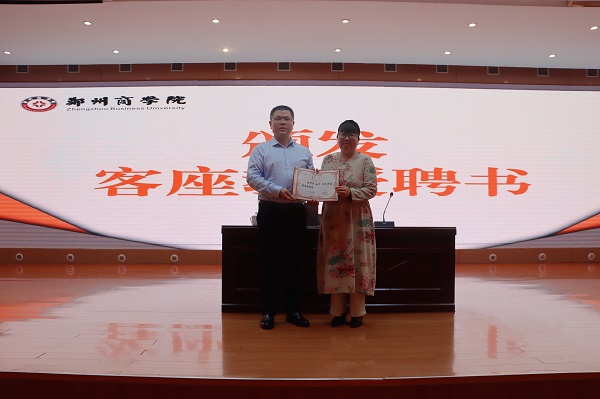校党委副书记兼纪委书记裴晓涛为乔叶老师颁发客座教授聘书