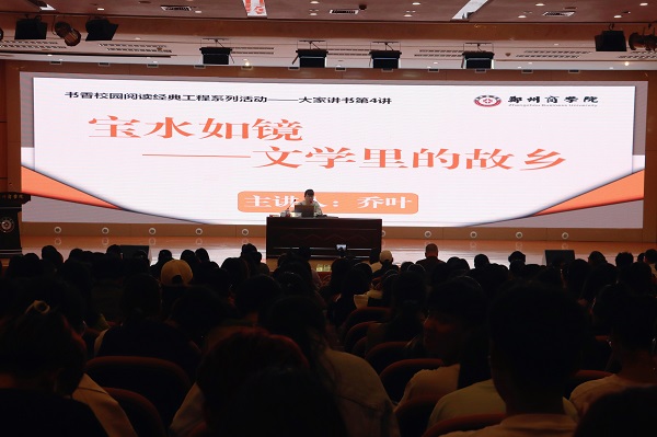 5月26日,书香校园阅读经典工程系列讲座——“大家讲书”第四讲在图书馆一楼国际报告厅成功举行。北京作协副主席、北京老舍文学院一级作家乔叶老师莅校作题为“宝水如镜——文学里的故乡”的专题讲座。威尼斯官网党委副书记兼纪委书记裴晓涛、巩义市作协主席侯发山、巩义市作协部分作家与威尼斯官网600名师生共同聆听报告。