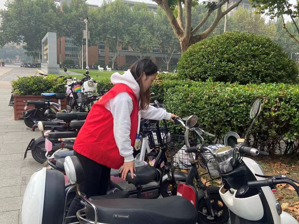 活动开始前,志愿者们统一身穿红色志愿马甲,准时到达活动场地,以饱满的热情投入到“规范停放车,文明伴我行”的志愿活动中。活动期间,志愿者们亲切地引导着同学们规范停车,将停放错区域的车辆移动到规定停车区域,并将停放的歪歪扭扭的车辆摆放好位置。
