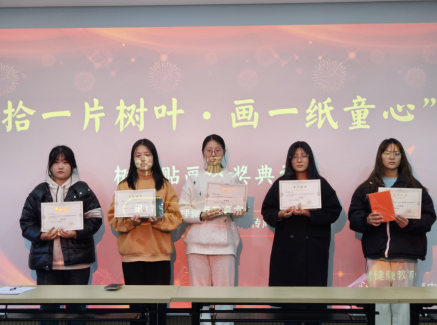 仪式上,高梦珂首先介绍了本次树叶贴画大赛的整体情况,同时宣读了本次大赛获奖名单,随后由心理健康教育中心的老师们为获奖同学进行了颁奖。伴随着热烈的掌声,心理健康教育中心的黄静静老师做总结讲话,首先她对所有获奖同学表示热烈祝贺,十分肯定了他们的作品,认为他们的作品都有着自己独特的设计理念,并充分肯定了该活动在引导学生树立正确心理健康观念的积极作用,表达了对中心开展后续活动的期待,希望本次获奖的同学们能够将自己成功的经验分享给其他同学,鼓励其他同学多参加学校组织的活动,取得进步,收获成果。活动最后此次颁奖仪式以所有获奖同学与参会老师合影留念结束。