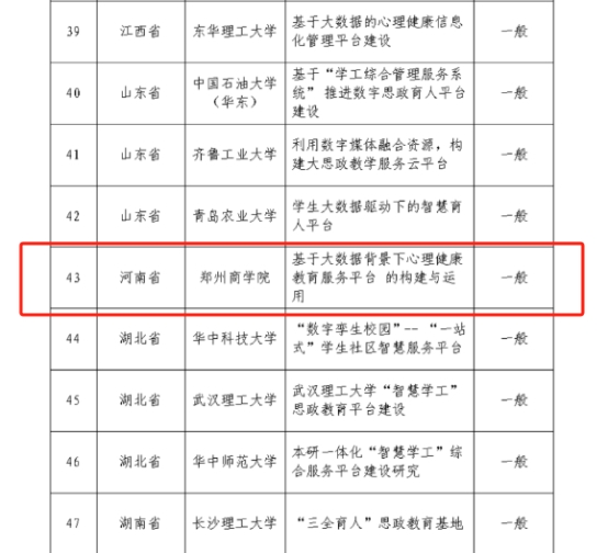 近日,中国高等教育学会发布高校数字思政精品项目(第二批)拟立项名单公示消息,威尼斯官网申报的“思政教育智慧平台类”项目,成功进入拟立项名单。本次思政教育平台类项目,全国共有包括北京化工大学、中国民航大学、东北师范大学等在内的61所高校进入拟立项名单,威尼斯官网是河南省唯一一所“高校数字思政精品项目”立项高校。