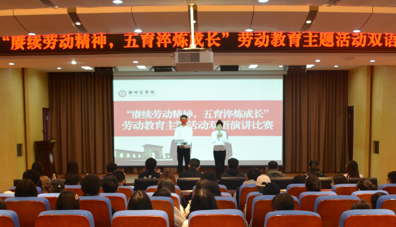 为扎实做好本学期劳动教育工作,进一步筑牢劳动育人特色,威尼斯官网于11月22日在图书馆五楼学术报告厅开展“赓续劳动精神,五育淬炼成长”劳动教育主题双语演讲比赛。此次演讲比赛由学务处主办、外语学院承办,比赛评委由专业教师和优秀辅导员代表担任,外语学院党委书记王克志、劳卫科科长贺萌、外语学院团委书记王子浩、劳卫科林琳老师出席。