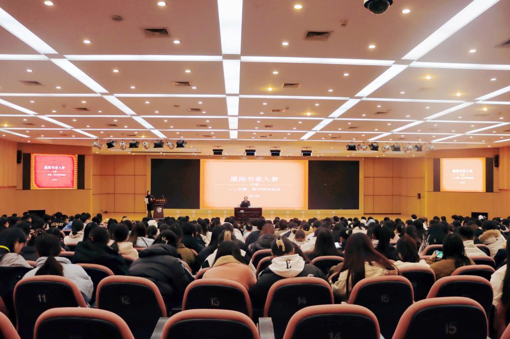 周大新从文字、书籍、图书馆和阅读谈起,梳理了几者的缘起和关系,认为文字让文明得以记录,书籍让文明得以保存,图书馆让文明得以聚集,阅读让文明与个体链接,广大师生应祛除浮躁、放平心态、凝神静气,持之以恒地开展通识阅读、兴趣阅读、专业阅读,在阅读中汲取精神力量,丰盈内心,获得成长与满足。