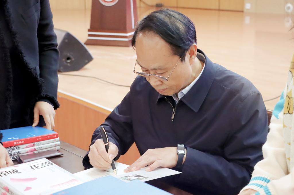 互动环节,周老师亲切地回答了同学们关于创作灵感的来源、写作瓶颈期的克服、如何高效阅读、如何选取创作典型等问题,鼓励同学们养成阅读习惯,用好图书馆资源,有选择地阅读经典,持之以恒地在特定的研究领域深耕细作,以期取得较好的成果。随后,周大新老师现场为热心书友签名并合影留念。