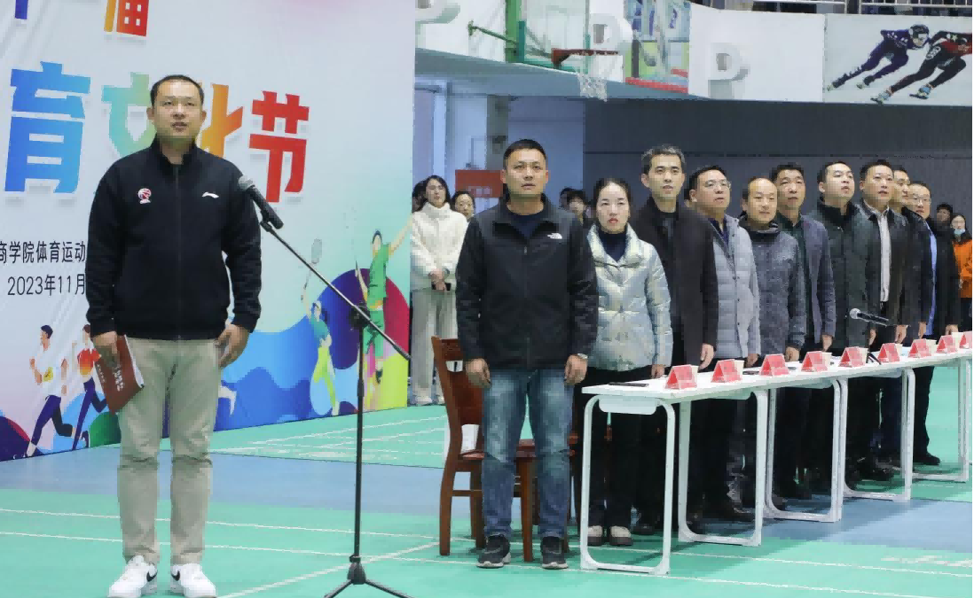 随后,刘升阳代表校领导致开幕词,他首先对本次活动的顺利开展表示祝贺,向筹备此次活动的师生表示感谢。并强调了体育运动在郑商校园的重要性。希望全体运动健儿发扬“更高、更快、更强、更团结”的奥林匹克精神,遵守比赛规则,团结协作,顽强拼搏;全体裁判员、工作人员坚持公平、公正、公开的原则,恪尽职守,严于律己,严肃赛风,严格赛纪,确保各项赛事顺利、高效地进行。