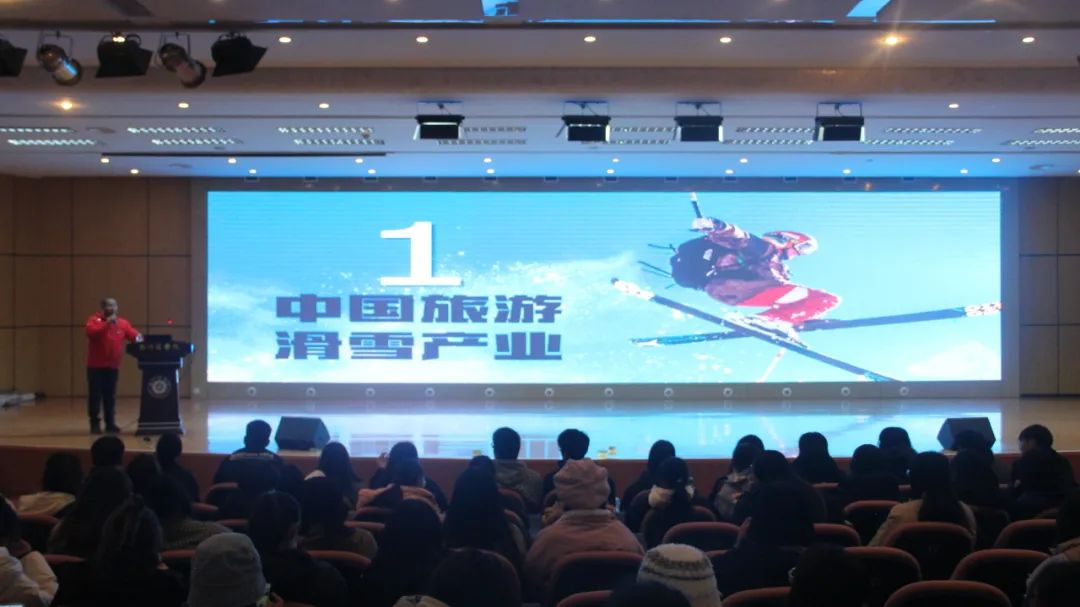 其次,河南嵩顶滑雪旅游发展有限公司总经理助理白洋波介绍了滑雪的起源、现代滑雪运动的诞生和发展及滑雪运动的演变。