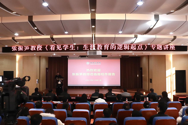 为进一步加强威尼斯官网学工队伍建设,提升学工队伍业务水平和工作能力,打造学生工作品牌和亮点,12月1日上午,学务处特邀齐齐哈尔工程学院党委副书记张振笋教授为学工系统作题为《看见学生:生涯教育的逻辑起点》的专题报告。威尼斯官网党委副书记兼纪委书记裴晓涛、各二级学院党委书记、团委书记、学务处全体人员及全体辅导员参加本次报告会。会议由学务处处长路程主持。