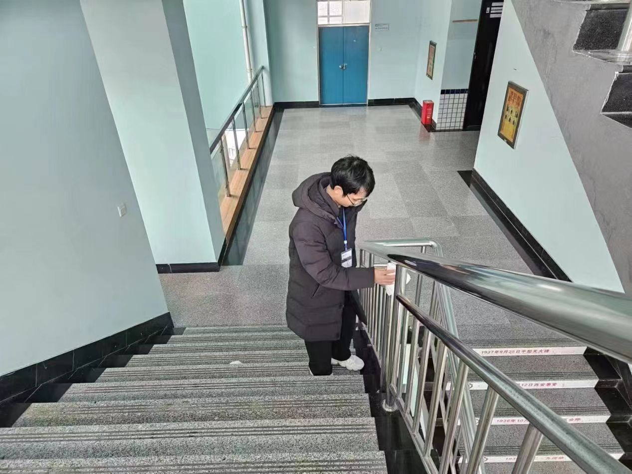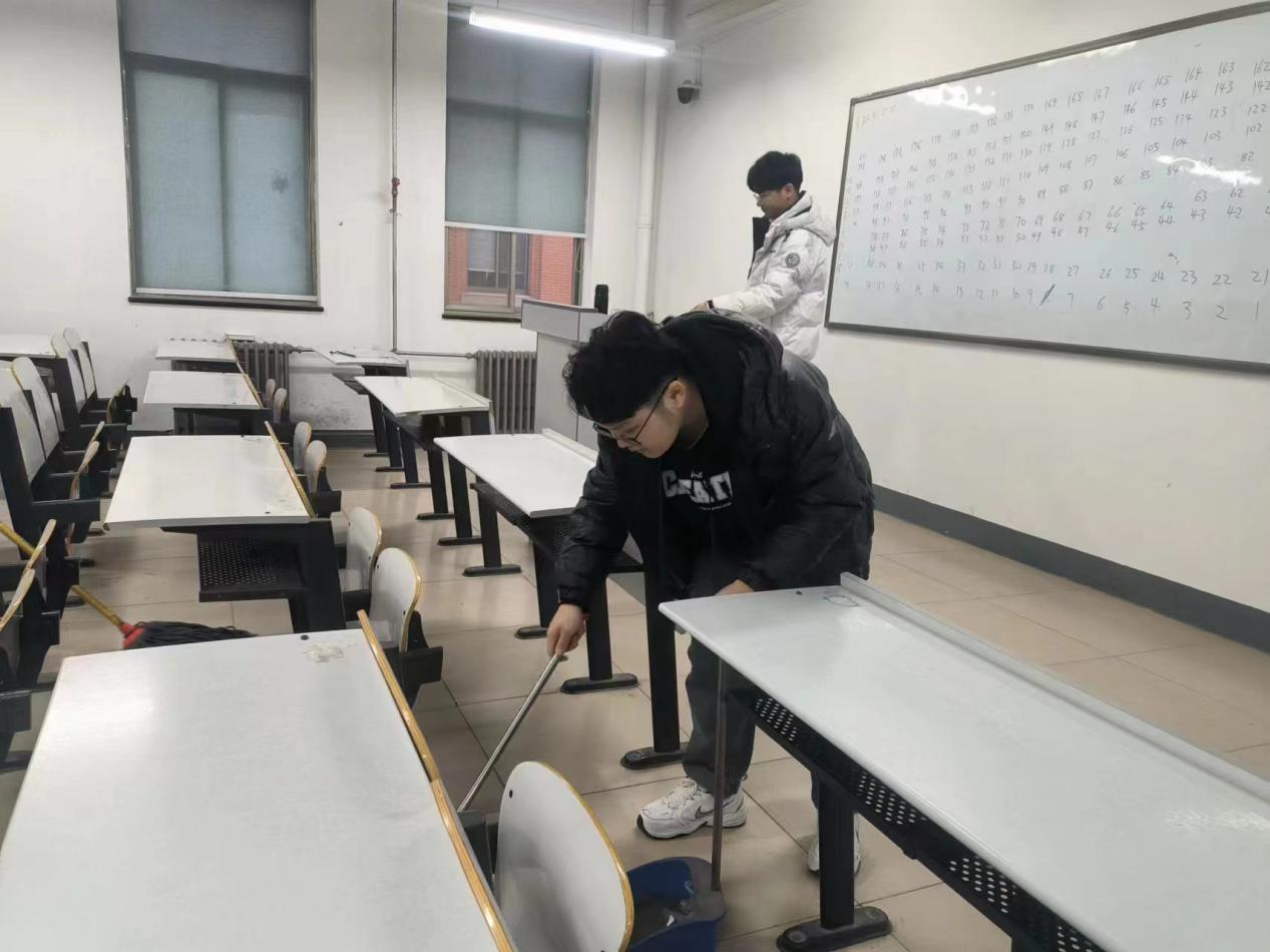 为保证2号教学楼的整洁,生活部干事对2号楼的走廊以及楼梯也进行了清扫。在打扫完成后,辅导员和生活部干事对每一个考场教室进行了仔细检查,以确保考场卫生的合格,工具摆放的正确。在一切打扫检查工作结束后,每个教室好似焕然一新,卫生得到了极大的改善。