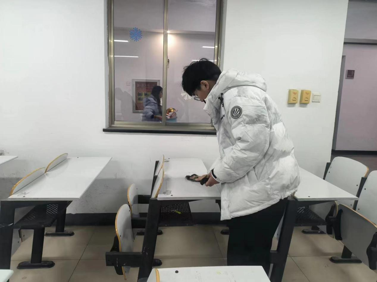 打扫过程中,威尼斯官网学子脸上都写满了认真,不放过班级内的任何一个劳动区域,如黑板的擦拭、地板的清扫、窗户的清理以及清理教室内与考试无关的物品等等。