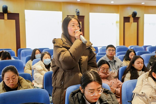 吴教授从心理危机的三种情况、大学生心理危机的发生率、家校沟通的必要性等相关背景引入,详细分享了家校沟通的典型案例及启发。接着,对于家校沟通中的难点和痛点,逐一给出了针对性的解答,指导大家如何化阻抗为合作。然后,再次强调了家校沟通中教育工作者的态度和价值观的至关重要性,要真正关心学生,从家长的角度思考问题。最后从精神卫生法的角度介绍了如何有效应对危机干预中的送诊及住院等现实问题。现场辅导员踊跃举手就自身工作中遇到的危机案例与吴教授进行互动,气氛热烈。