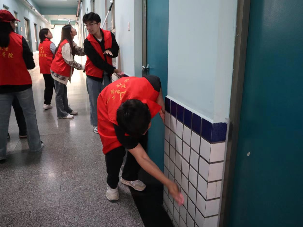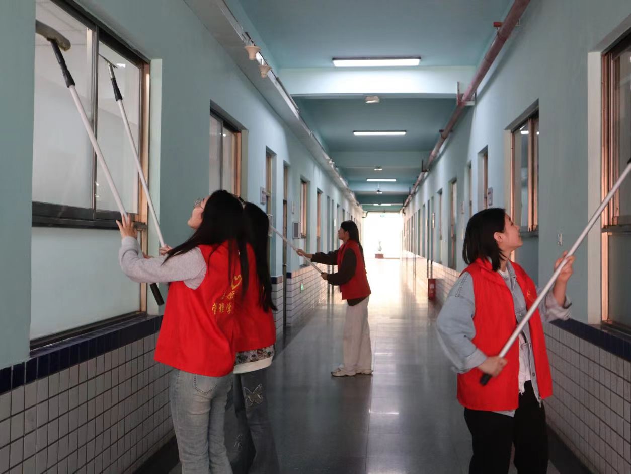 活动开始前,张老师对此次卫生清扫活动进行了相关介绍与安排。随后,同学们开始对4号教学楼进行清扫。他们分工明确、团结协作,对楼梯道、走廊、消防设施、门窗、栏杆等都擦拭干净,对公共区域及卫生死角进行彻底清扫。在负责人和学生们的共同努力下,此次卫生清扫活动圆满结束,同学们纷纷表示,参加此次清扫活动提高了自己的劳动实践能力,同时也进一步了解了校庆的意义和重要性,个人荣誉感和自豪感得到显著提升。