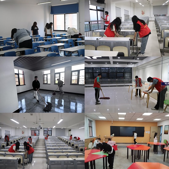 5月9日-10日,学务处联合各二级学院结合《劳动教育月活动方案》“以劳育美,美在责任——基础劳动持续进行”,组织开展教室卫生大清扫专项活动,将学院所在楼宇内所有学生使用教室(包含考研教室)卫生打扫干净,同时加强教学楼日常巡查,问题反馈整改,严禁教室堆放杂物、私拉乱扯电线,禁止电动车入楼、教室发放传单等,共同营造教学楼良好的学习、工作、生活环境。