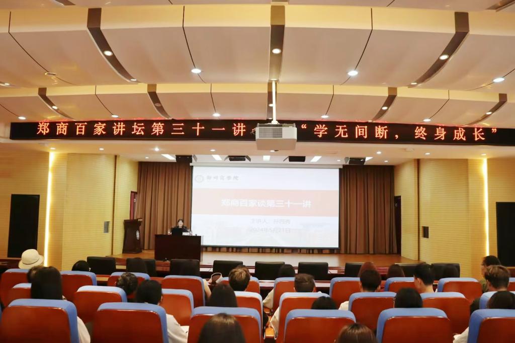 5月21日,书香校园阅读经典工程系列讲座——“郑商百家谈”第三十一讲在图书馆五楼报告厅成功举行。此次活动由图书馆主办、金贸学院承办,共200名师生参与了活动。
