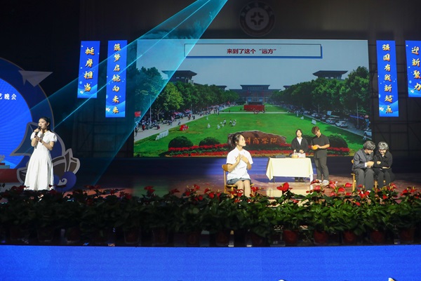 晚会以视频《跨越山海奔向你》和灯光秀《新生大点名》开场,在观众的阵阵欢呼声中,迎新晚会正式拉开帷幕。