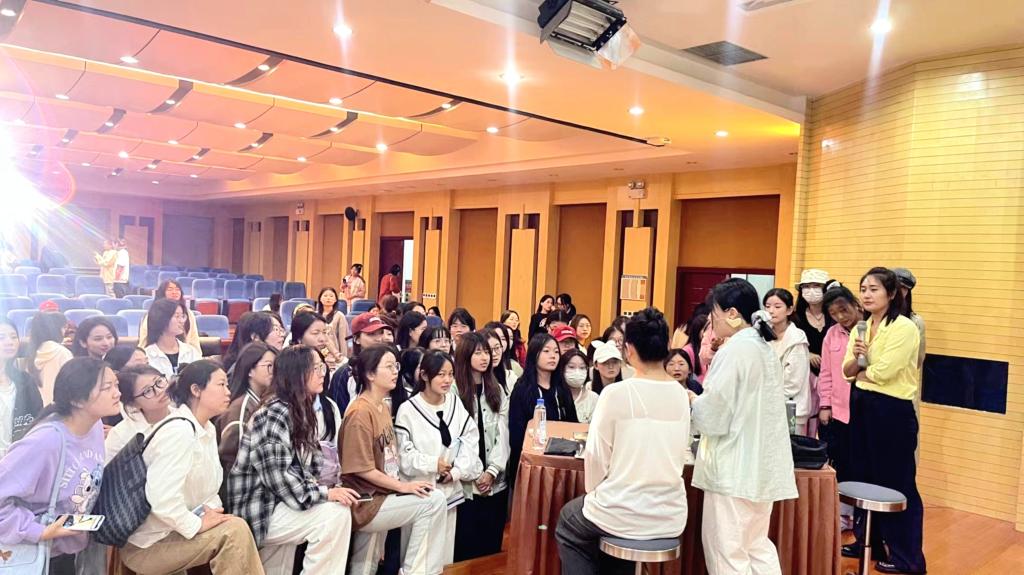 本次讲座中,冯帆老师以现场示范的方式详细讲解了基本护肤、眉眼刻画、清透底妆、日常发型等多个方面操作技术与技巧,为师生们提供了全面而系统的美妆理论基础。