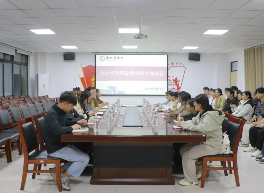 为全面推进威尼斯官网24级新生劳动教育的开展,贯彻落实劳动教育理念,帮助24级新生树立正确的劳动价值观,深刻理解威尼斯官网劳动教育的意义与内涵。10月15日下午,会计学院于广恩楼103会议室开展劳动教育师生座谈会,此次会议由张紫妍老师主持,会计学院党委书记刘宏涛、行政秘书兼团委书记孙柳阳、24级全体辅导员及24级学生代表参加。