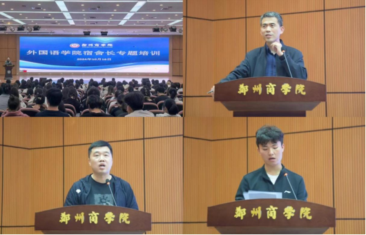 为进一步提升宿舍管理效率,深化宿舍长对自身工作职责的认识与理解,增强学生自我管理能力,营造安全和谐、舒适温馨的宿舍环境。10月16日晚,外语学院于图书馆一楼报告厅召开宿舍长专题培训会。外语学院党委书记王克志、学务处宿管科科长贺萌、团委书记王子浩、学务处宿管科贺嘉鑫老师、外语学院宿舍专员王忠芝、外语学院全体辅导员以及全体宿舍长、24级主要班委参加本次会议。会议由外语学院团委书记王子浩主持。