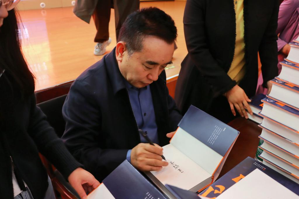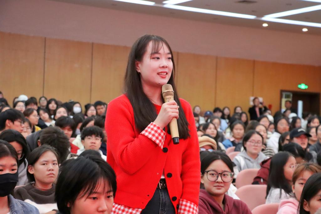 在互动交流环节中,王跃文老师耐心回答了学生提出的问题,并分享了自己在文学创作中的宝贵经验。他建议大家要真诚地思考生活、真实地表达生活,在此基础上多读多写。多读以提高文学素养,开阔眼界;多写即勤加练习,在练习中摸索前进。