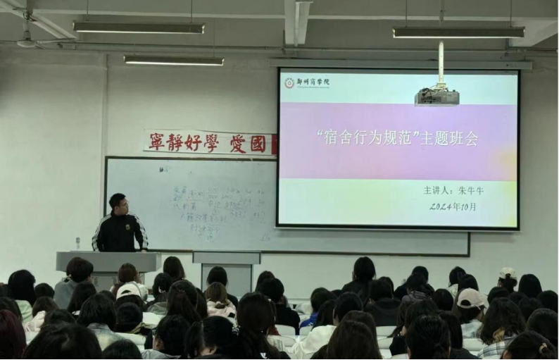各学院辅导员在班会上带领同学们对宿舍条例和行为规范进行系统性学习,对于需要注意的细节进行一一讲解,并结合具体的案例的为学生进行说明。最后,辅导员们提倡同学们要做好以下几点:第一,尊重理解和包容他人的生活习惯,通过友好沟通和协商来共同维护宿舍和谐。第二,坚持安全第一,严格遵守校规校纪和宿舍安全规范条例,共同构建安全的居住环境。第三,注重个人卫生定期打扫寝室和公共区域卫生,共同打造干净整洁美观宿舍。