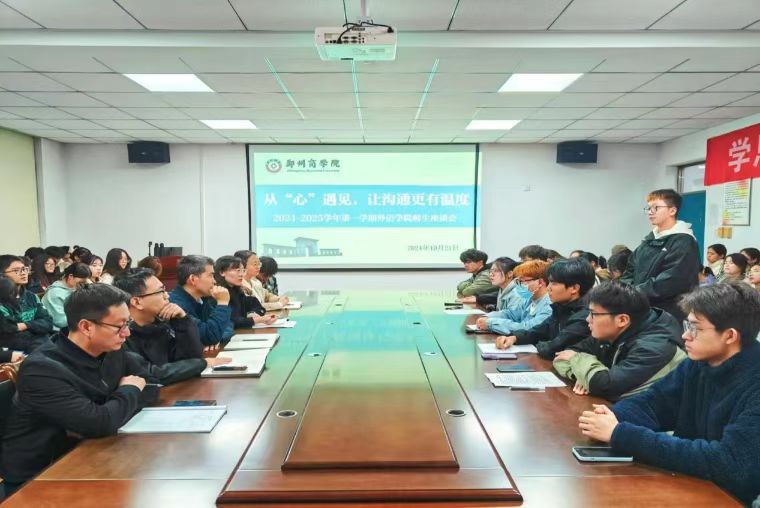 10月21日下午,外语学院组织开展“从‘心’遇见,让沟通更有温度”——书记、辅导员与学生面对面座谈会。外语学院党委书记王克志、团委书记王子浩、24级辅导员兰敬高、杨梓梅、靳珊老师及学生代表参加座谈会。座谈会中,学生代表们踊跃发言,围绕校园生活、劳动教育、学习以及个人成长等方面展开了热烈讨论。在学习方面,他们分享了在学习中遇到的课程难度、并提出希望增加学习教室等建议。在个人成长方面,学生们也向与会老师提出了课外活动多样化、职业规划、自习室使用等的问题和建议。期间,与会领导、老师领导们认真倾听每一位学子的心声,并对问题进行逐一解答。学院党委书记王克志对学院学子勉励道:同学们的每一点建议都是推动学院向前发展的宝贵动力。面对学习中的挑战,要勇于攀登,不畏艰难,学院也将不断优化教学资源,增加学习空间,提供更加优良的学习环境。