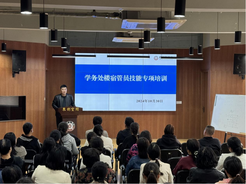 为进一步加强楼宇安全卫生管理,有效预防秋冬季传染病的发生,确保师生的身体健康与生命安全,打造健康平安的住宿学习环境,学务处于10月30日下午在学生事务中心3楼路演厅组织开展楼宿管员环境消毒消杀专题培训。此次培训特邀巩义市疾控中心公共卫生管理科副科长,2024年河南省消毒技能竞赛团队和个人双一等奖获得者--刘宁波老师担任主讲,会议由宿管科科长贺萌主持,全体楼宿管老师积极参加。