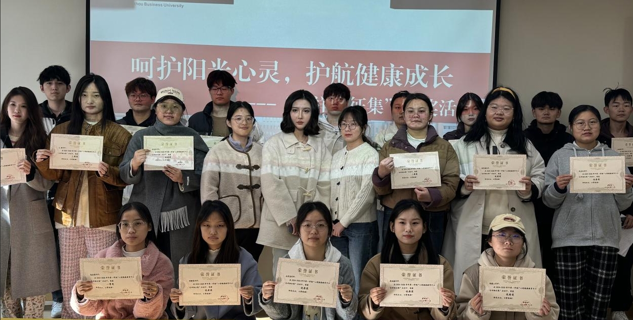 11月20日上午,心理健康教育中心在团体辅导室举行“呵护阳光心灵,护航健康成长”心理健康教育宣传周颁奖仪式,由校心委主席郭婷主持。此次活动不仅加深了同学们对心理健康的认识,也激发了大家积极参与心理健康建设的热情。