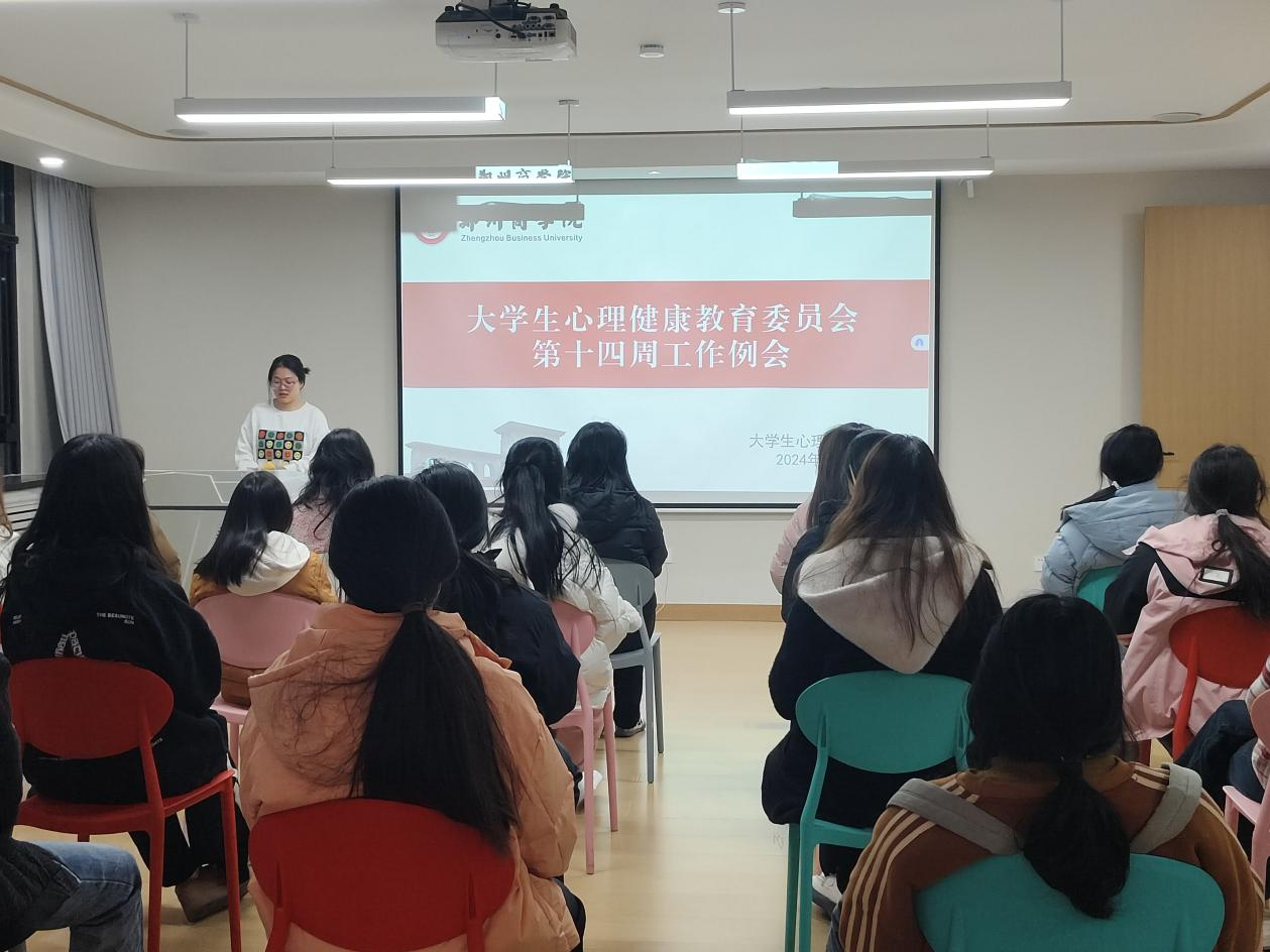 2024年12月3日大学生心理健康教育委员会在团体辅导室召开了第十四周工作例会。本次会议由郭婷主持,委员会全体成员参加了此次会议。