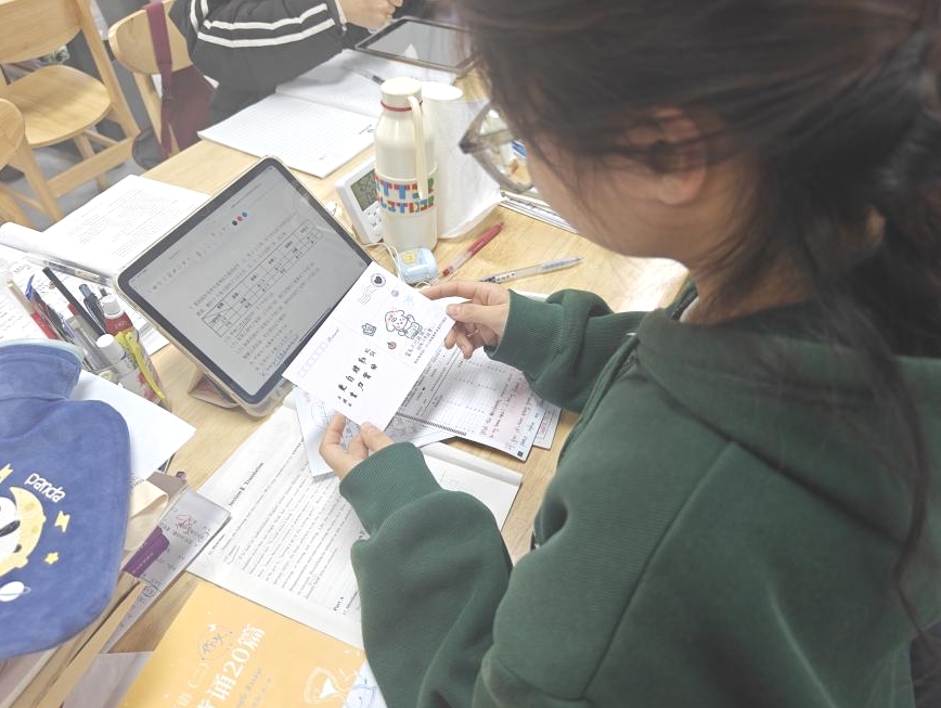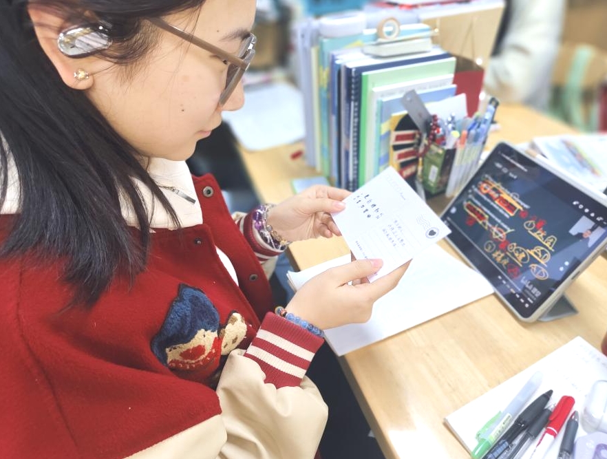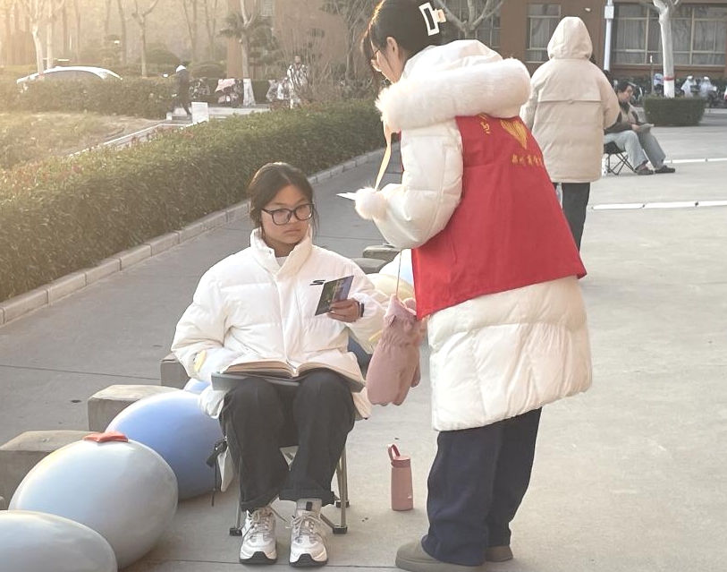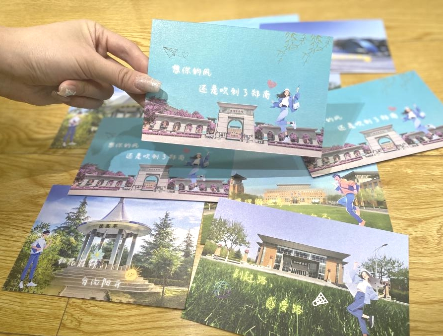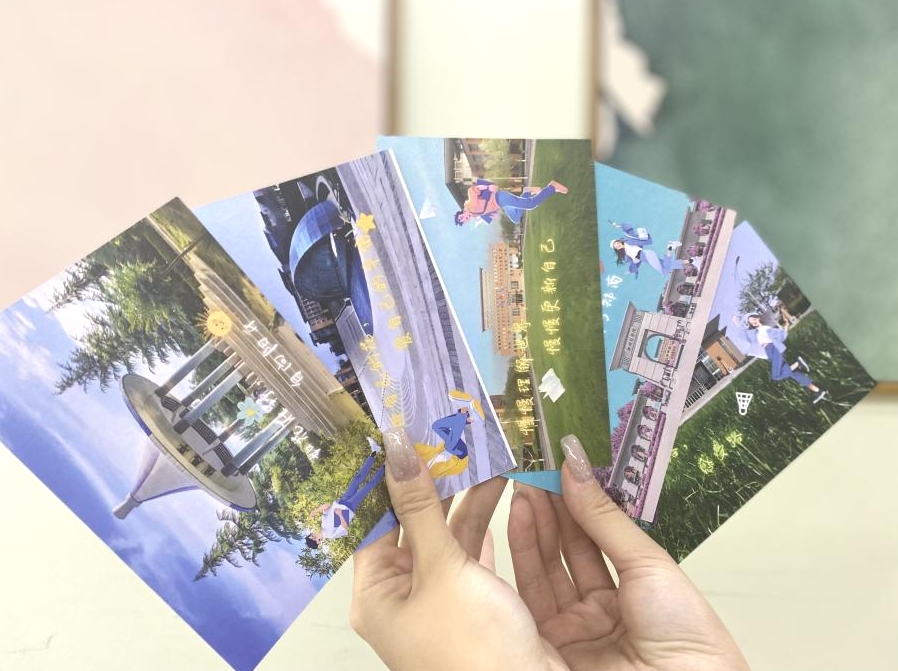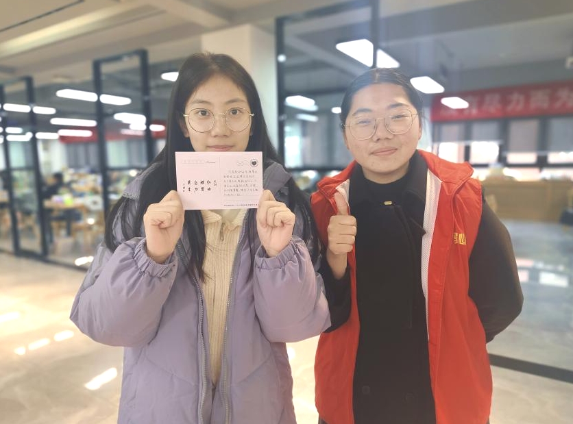 校心委成员手持精美的明信片,将这份特别的礼物亲手送到考研学子的手中。同时他们的话语中充满了鼓励和支持,让收到明信片的同学感受到了来自校园朋辈的温暖和关怀。