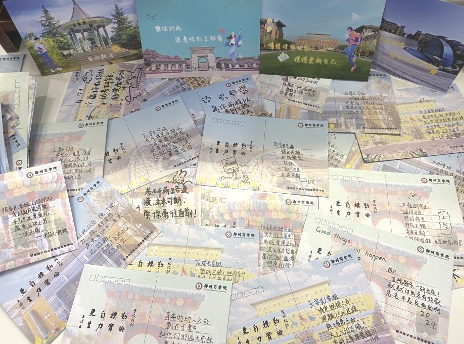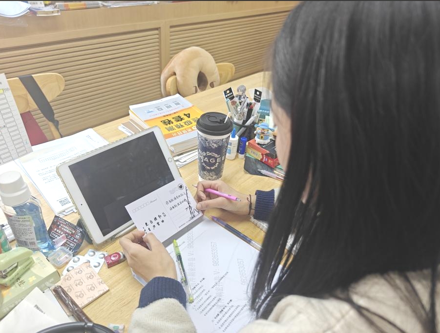 本次活动通过学生代表在祝福卡片上写下对考研学子的美好祝愿以及校心委朋辈的支持与鼓励,为即将踏上考研战场的同学们送去冬日的温暖和满满的心意。这些明信片上不仅有着励志的话语和温馨的祝福,还融入了校园元素和考研主题,让每一份明信片都充满了独特的意义和价值。