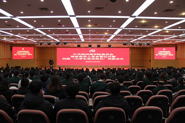 12月28日下午,校党委举行了预备党员入党宣誓仪式暨“大学生党员标兵”表彰大会。党委书记吴建军出席会议并讲话,各分党委书记、党支部书记、2023年下半年新接收的380名预备党员参加会议。会议由党委组织部部长邢坤主持。