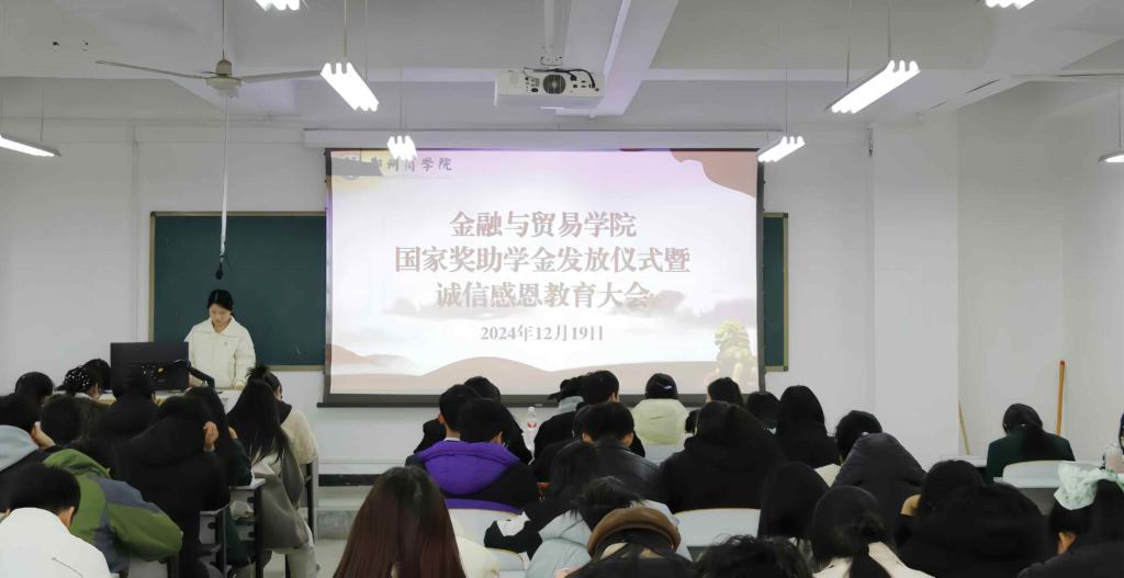 为贯彻落实国家资助政策,深化学生资助育人工作,进一步激励优秀学子不断成长,并同步培养受助学生的感恩意识和社会责任感。12月19日上午,金贸学院于1号教学楼501教室召开国家奖助学金发放仪式暨感恩励志教育大会。本次会议的召开极大地激发了全院学子对学习的热情与积极性,为以后资助工作的开展奠定坚实基础。