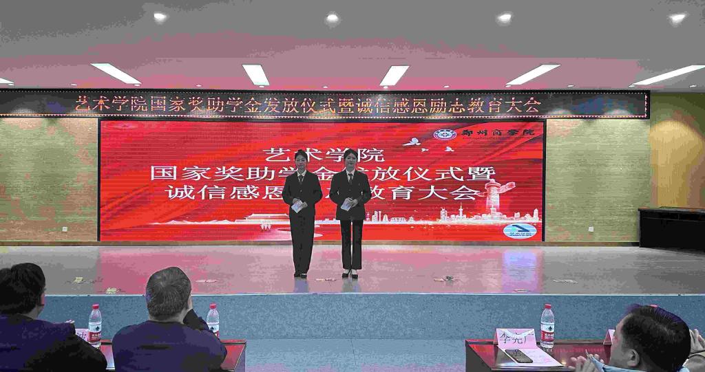 助学筑梦,奋力青春。为充分彰显先进典型的示范力量,艺术学院于2024年11月26日晚,在自力楼报告厅隆重举行“艺术学院国家奖助学金发放暨诚信感恩励志教育大会”。艺术学院院长李宪广、党委书记李帅、副院长徐千淇、团委书记殷晴波、辅导员代表以及部分学生代表出席本次会议。愿同学们在今后的大学生活中继续逐梦前行,展现卓越人格与自信风采,让青春闪耀璀璨光芒!