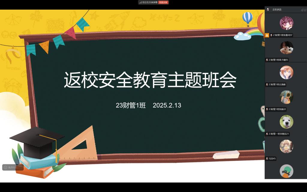为切实做好新学期学生返校各项工作,增强学生的安全意识和防范能力,保障同学们平安顺利返校,学工系统于2月10日至13日组织各班级开展了返校安全教育主题班会。