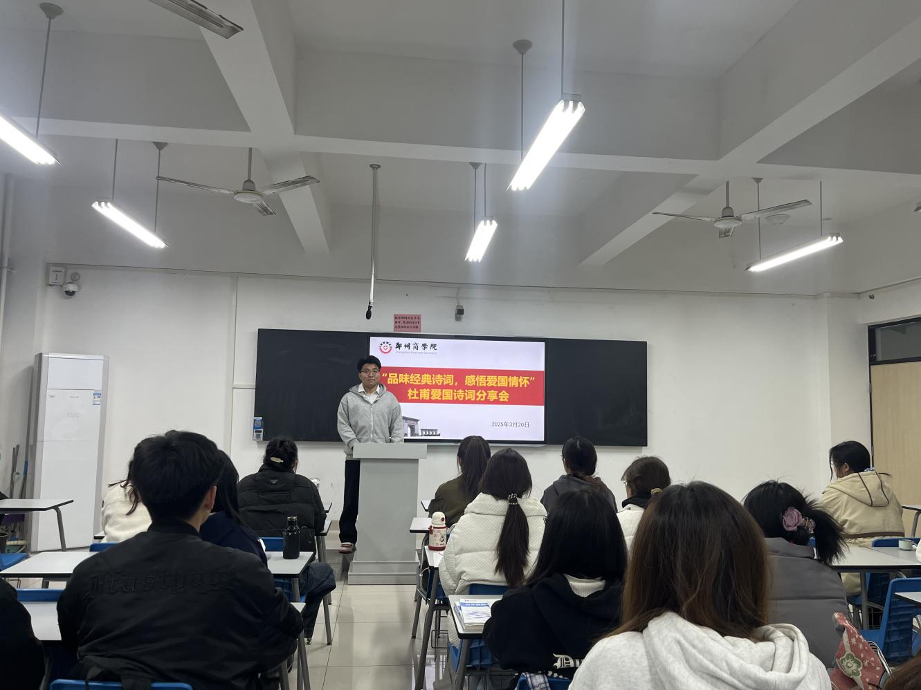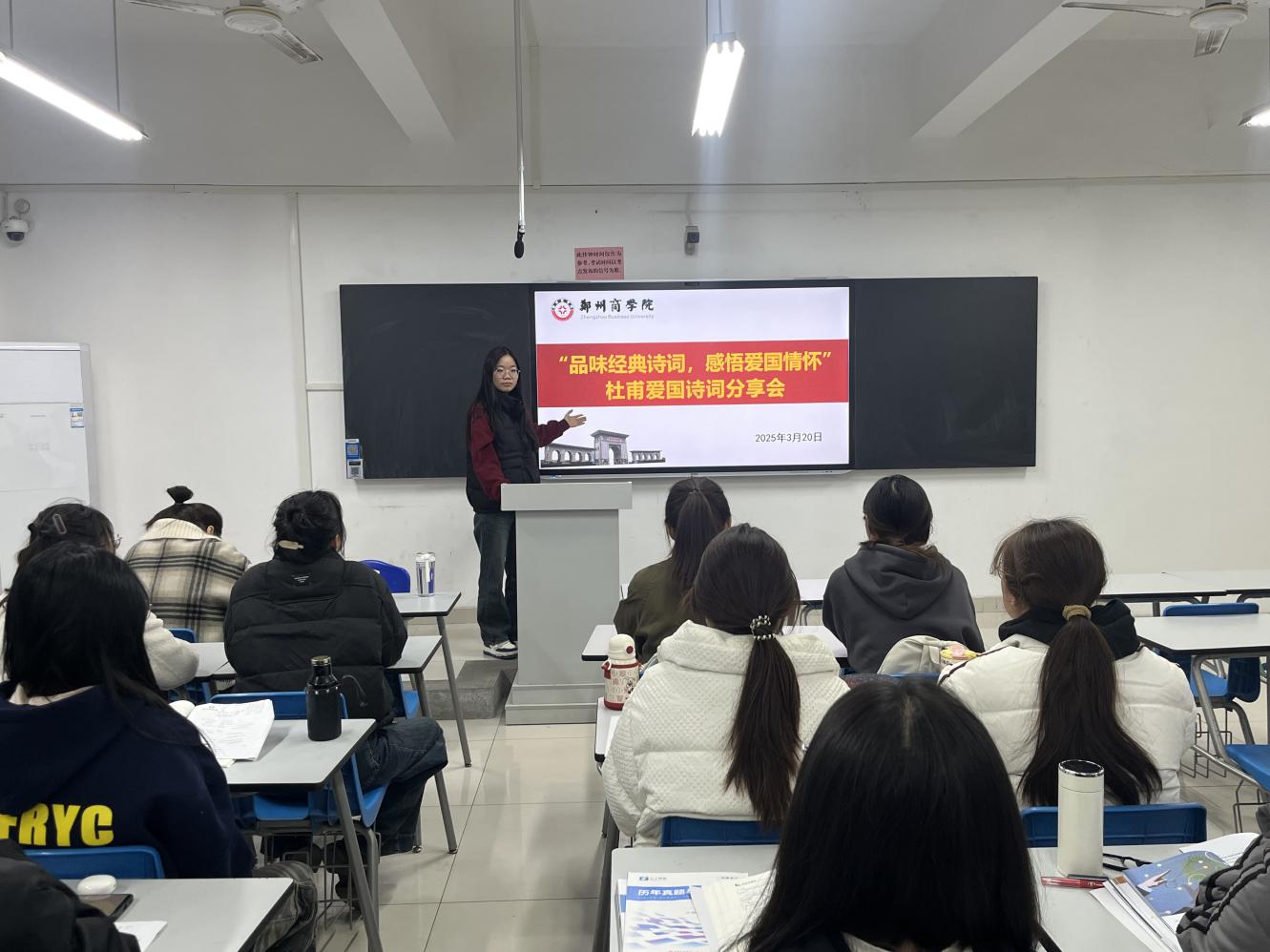 为进一步传承中华优秀传统文化,深化同学们对爱国情怀的感悟,3月20日,会计学院在广恩大楼举办“品味经典诗词,感悟爱国情怀”杜甫爱国诗词分享会。