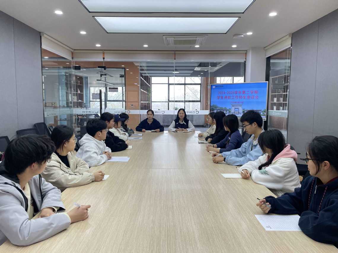 3月27日下午,学务处学生资助管理中心在学生事务服务中心二楼会议室召开了本学期学生资助工作师生座谈会。学生资助管理中心王晶晶科长、陈梦雪老师和二级学院学生代表以及校资委会学生代表参会。