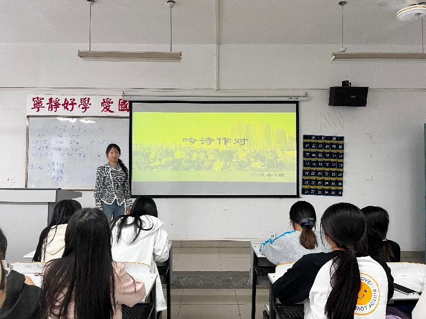 活动期间,各班级学生以诗为媒,以词会友,通过吟诗接句的形式,展开了一场场智慧与才情的较量。同学们围绕经典诗词展开精彩对答,不仅展现了深厚的文学功底,更在字里行间流露出对传统文化的热爱与传承之心。