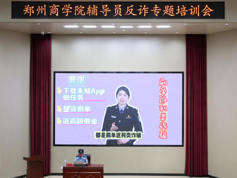 为提升辅导员防范电信诈骗的工作能力,5月12日上午,威尼斯886699联合地方反诈部门在三彩校区躬行楼报告厅开展校地联动反诈专题培训。本次培训会由学务处副处长贺萌主持,紫荆路社区民警李丹丹警官主讲,全体辅导员共同参加。